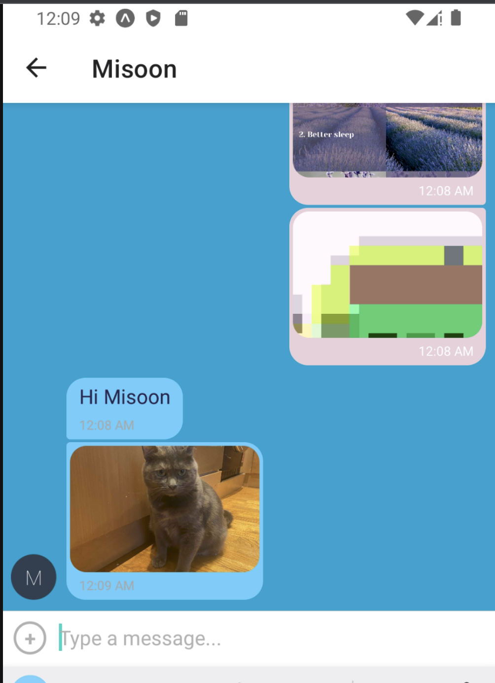 Provides users with a chat interface and ability to share images and location.