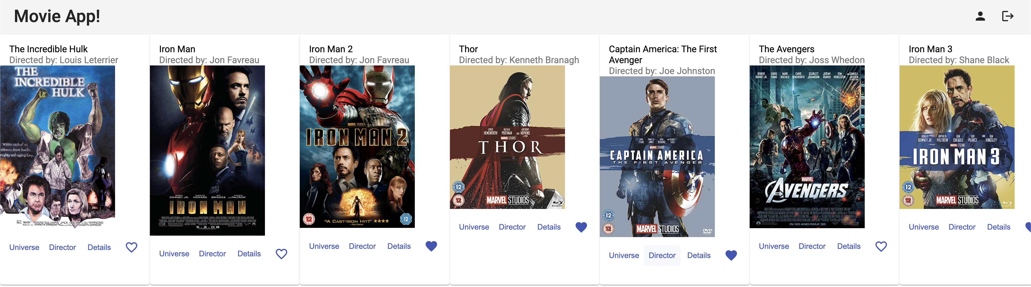 Movie App Client is a SPA (Single Page Application) designed to display a list of movies dedicated to superheroes alongside the basic information about director. It provides users with an option to interact with movie database.